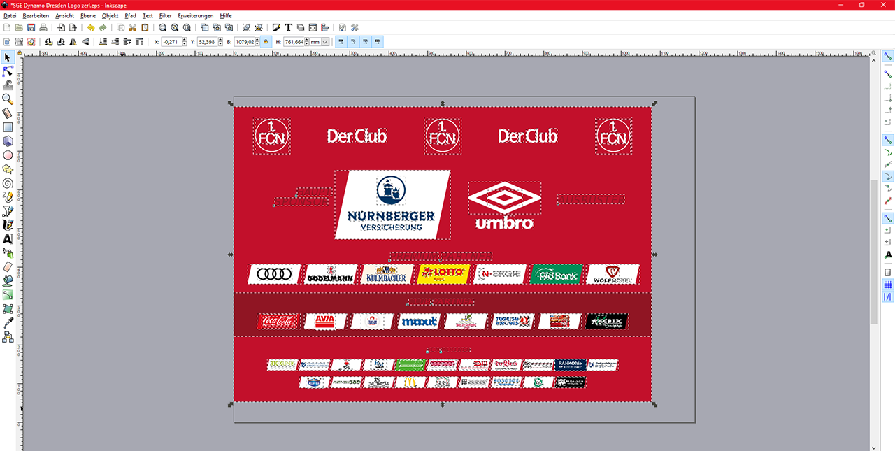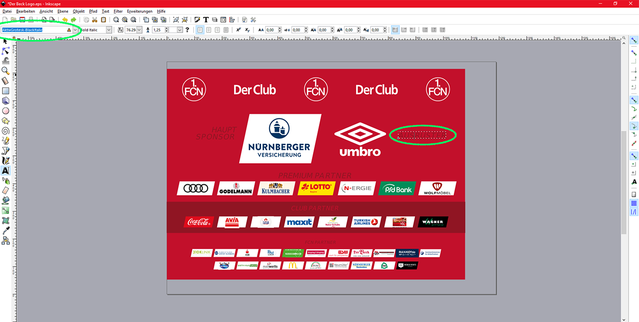Als Beispiel einer Erstellung einer HD Grafik nehme ich die Firma Beck (Bäckerei), den Fußballclub 1. FC Nürnberg und eine weiße Sponsorentafel/fläche, dies ist nur als Anschauungsobjekt hier verwendet.