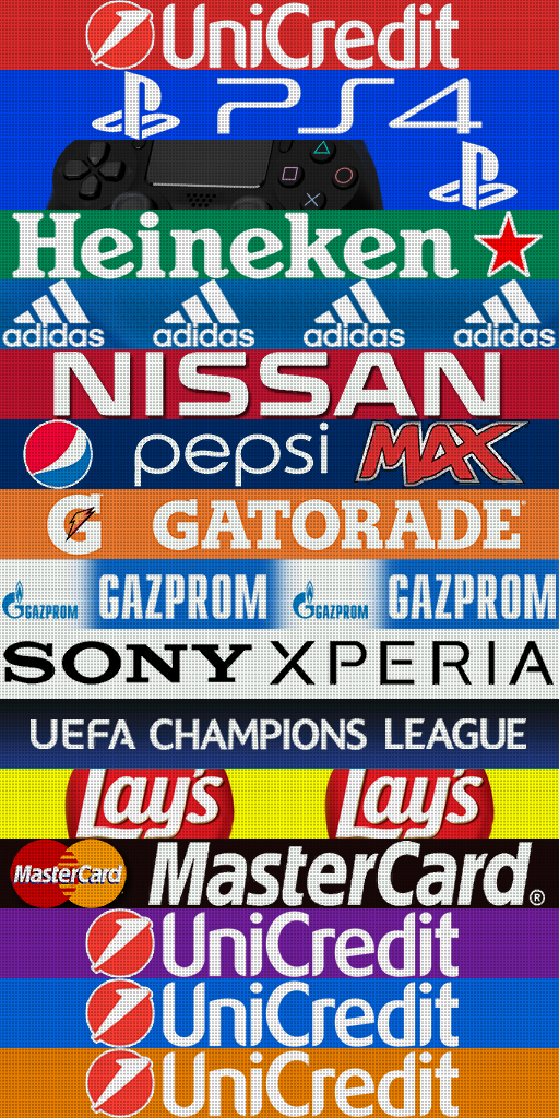Hier sind die Adboards mal in einer anderen Reihenfolge. Ich hab mich dabei an das bereits verfügbare von ??? gerichtet. Ich denke, damit sind die Adboards miteinander verbunden, also nebeneinander, wie es sein sollte (Playstation, Unicredit, Lays). Hatte noch keine Zeit, diese zu testen.