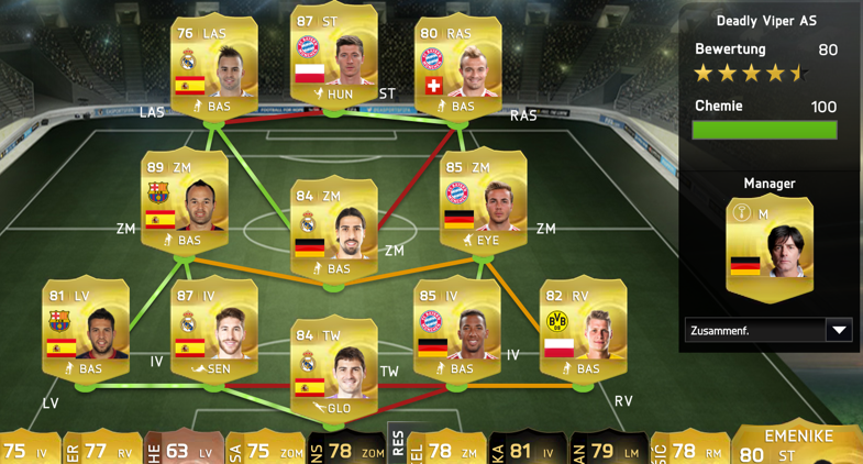 Mein bisheriges gefiel mir zwar richtig gut, aber ich möchte mich schon mal ein bisschen auf mein geplantes finales Team vorbereiten. Und dafür müssen im oben genannten Team nur einzelne Spieler ausgetauscht werden. Und zwar der TW, LS und RS (wer könnte das wohl werden:sarcastic:). Hoffe ich kriege die fehlenden Coins bis zum TOTY zusammen:D