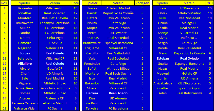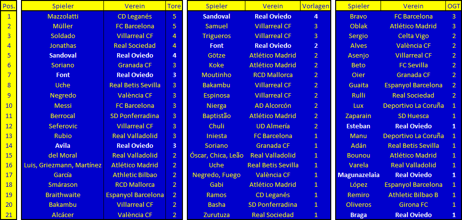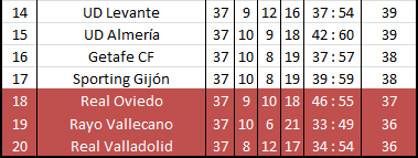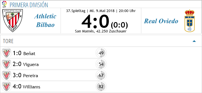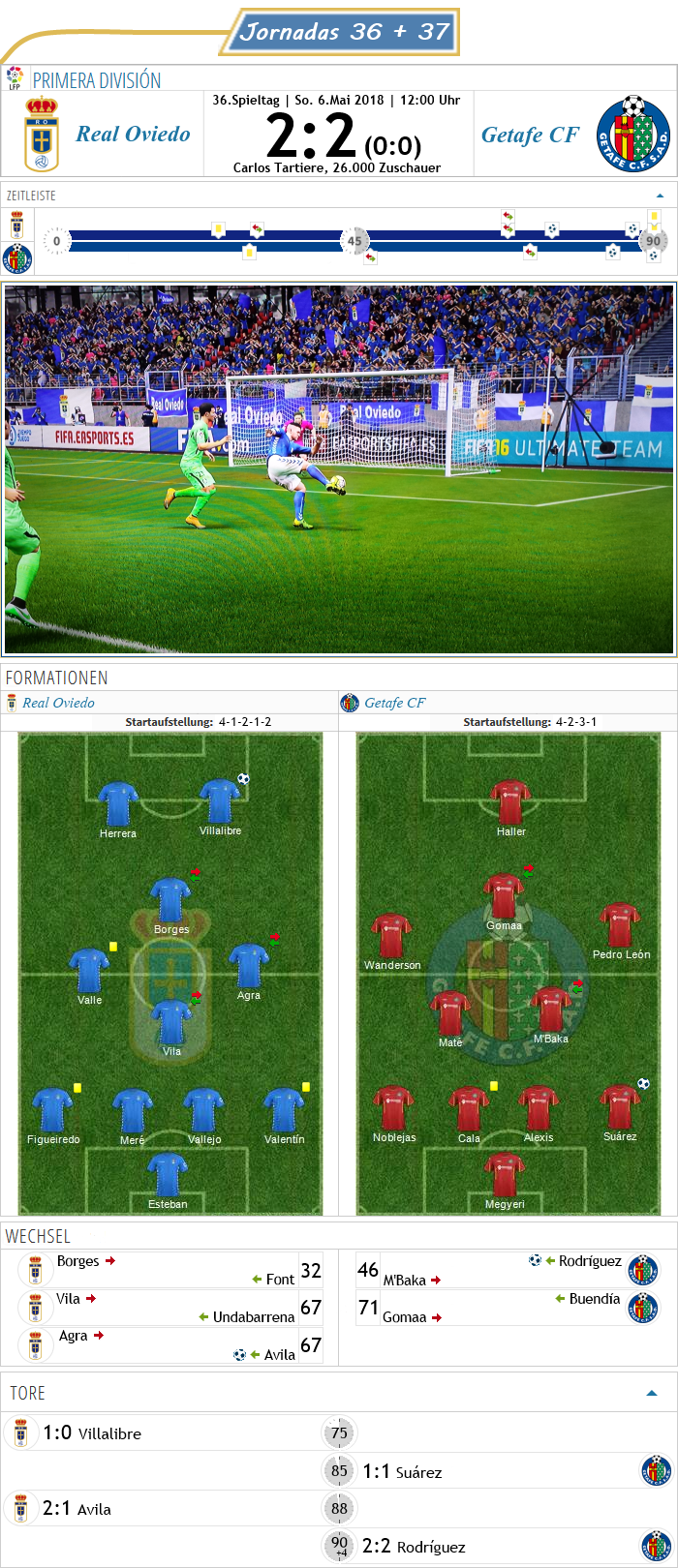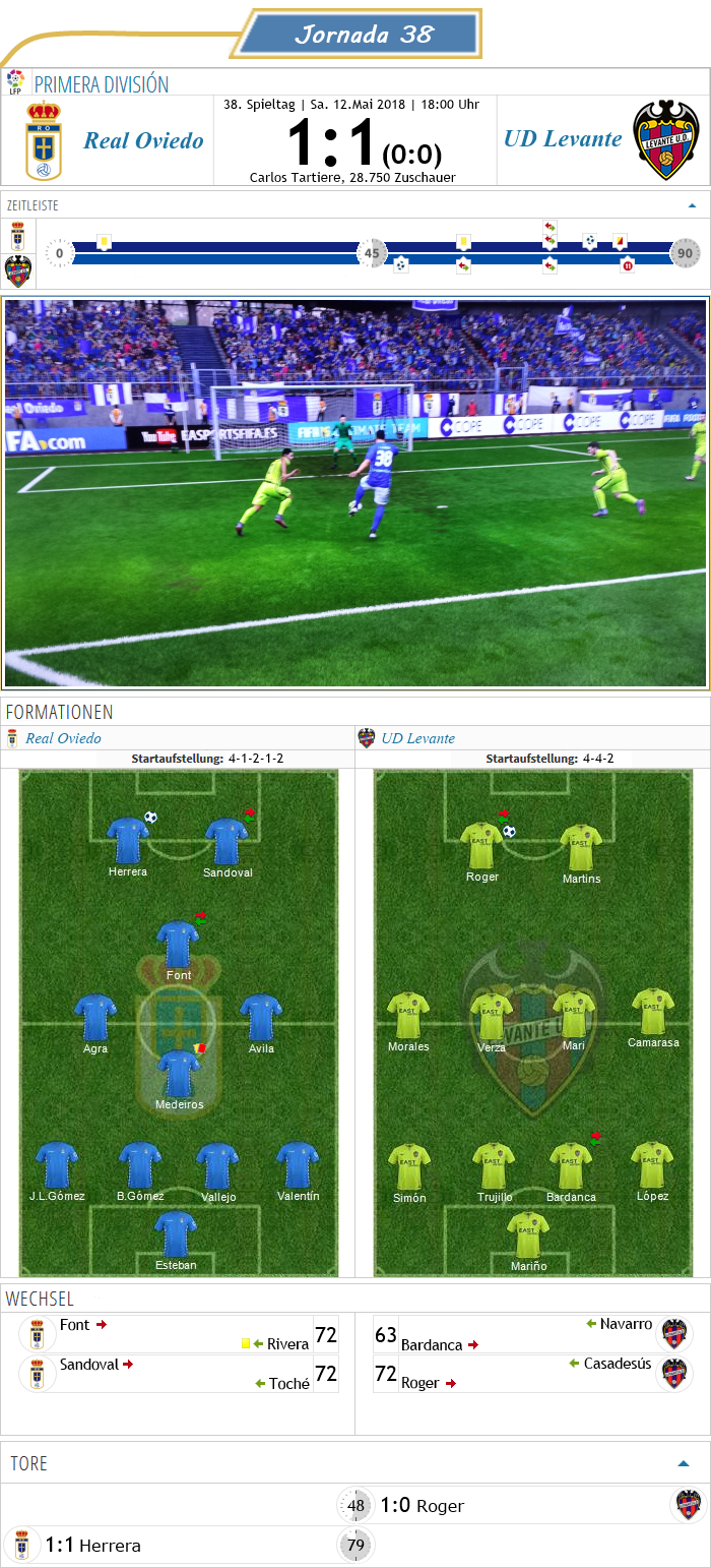 Es war angerichtet, Real Oviedo gegen UD Levante, die Entscheidung um den Klassenerhalt. Der Sieger der Partie würde in jeden Fall fix die Klasse halten, Levante wäre schon mit einem Remis durch und auch bei einer Niederlage müsste schon einiges zusammenkommen, dass die Valencianer noch unter den Strich rutschen würden. Anders sah es da bei Oviedo aus, verlieren war heute absolut verboten und dessen war sich der Aufsteiger auch bewusst, agierte von Beginn an druckvoll und setzte Levante unter Druck. Schüsse von Herrera und Font verfehlten noch das Ziel, in der 16. Minute prüfte Villalibre dann ein erstes Mal Diego Mariño, doch der Torhüter hielt den Schuss. Levante stand tief hinten und war offensichtlich darauf bedacht, defensiv kompakt zu stehen und Oviedo zur Verzweiflung zu treiben. Das konnte Mariño am besten, Medeiros' Schuss an die Stange war in der 36. Minute am nächsten dran, doch zur Pause konnte man nichts Zählbares vorweisen und die Zeit lief klar gegen Oviedo. Um die Konzentration der Mannschaft nicht zu stören, wurde keine Zwischenstände der anderen Teams durchgesagt, aber Oviedo wusste, dass sie am besten hier gewinnen und damit nicht mal an die anderen Spiele denken konnten. Doch in der 48. Minute passierte es. Salvador Agra vertendelte den Ball an der Mittellinie, Levante schaltete schnell, Roger zog ab, Esteban konnte den ersten Schuss zwar halten, aber der Ball kam genau wieder zu Roger, der trocken abstaubte, Levante führte, Oviedo zum jetzigen Zeitpunkt fix abgestiegen! Sergio Egea motivierte seine Mannschaft von draußen, holte immer wieder Héctor Font zu sich, um taktische Änderungen zu besprechen, aber nichts brachte den gewünschten Erfolg. In der 72. Minute reagierte Egea personell, nahm Sandoval runter und brachte Toché, der nach seinem Kreuzbandriss möglicherweise seine letzten Minuten bestreiten würde? Schöne Geste, obwohl es hier gegen den Abstieg ging! Ebenso kam Rivera für den völlig entkräfteten Héctor Font. Oviedo drückte und pushte und in der 79. Minute brach kollektiver Jubel aus, als Felix Avila 4 Gegenspieler stehen ließ, zu Toché spielte. Eigentlich wollte der Stürmer abziehen, traf den Ball jedoch nicht gut und leitete diesen direkt weiter auf Herrera, der nicht lange fackelte und abzog, 1:1, der Ausgleich, Oviedo lebte noch! Beinahe aber nur 5 Minuten. Denn nach einem erneut schweren Fehler von Salvador Agra war Fabião Medeiros der einzige, der Martins noch irgendwie erreichte, doch nicht regelkonform stoppen konnte. Mit der gelb-roten Karte und einem Elfmeter hatte er jedoch den sicheren Ausgleich verhindert. An der Wand zum Kabinengang zitterte er mit, als Victor Casadesús einen kurzen Anlauf nahm und anschließend mit seinem Elfer an Esteban scheiterte, der 42-jährige erriet die Ecke und parierte. Esteban schrie sich seine Emotionen aus der Seele und auch Medeiros sprang jubelnd in die Höhe, bevor er in den Katakomben verschwinden musste. Oviedo nun auf einem schmalen Grat, in Unterzahl, riskierte man, oder hoffte man, dass das Remis reichen würde? Man riskierte, doch es ergab sich nichts mehr, es blieb beim 1:1, zumindest hatte man damit punktemäßig zu Gijón und Getafe aufgeschlossen, nun hieß es warten und bangen, ob es denn auch tatsächlich reichen würde! |