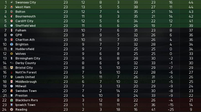 Birmingham - mit Blick nach oben. Es folgende einige Teams, die noch mehr oder weniger tief im Abstiegstrudel stecken: