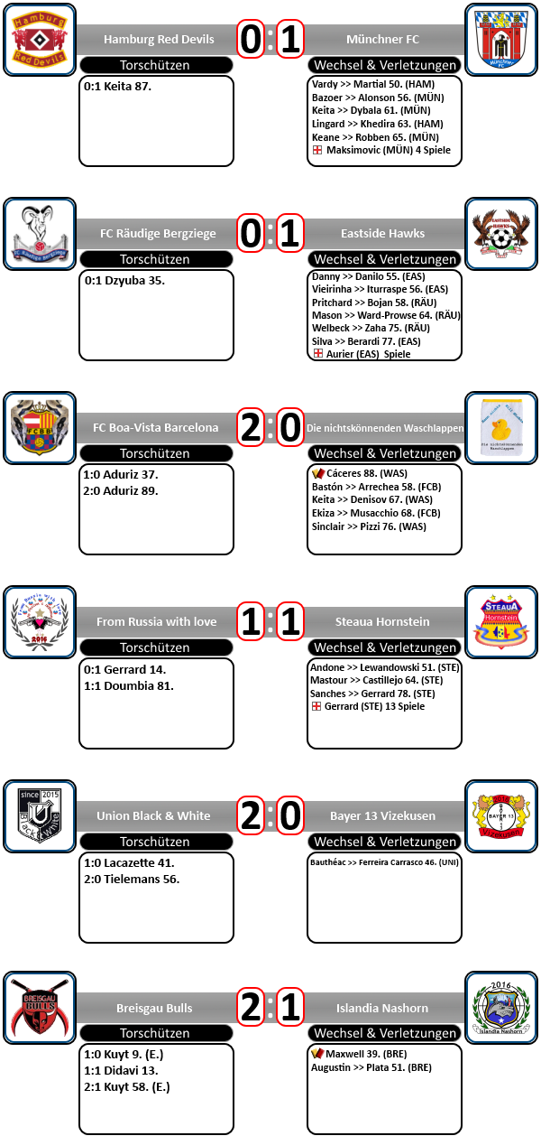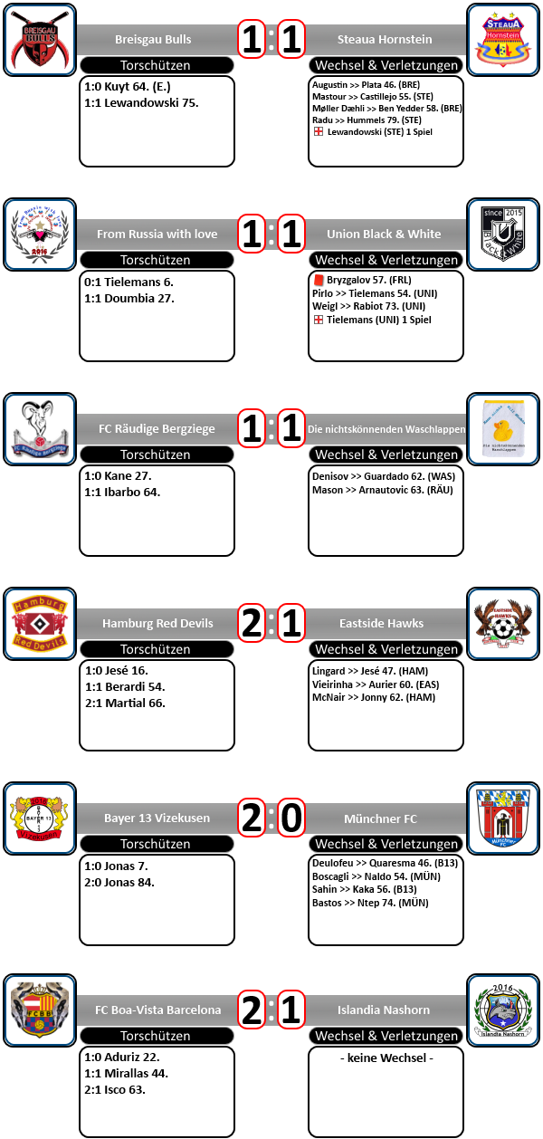 Wer Statistiken (gelbe & rote Karten) haben möchte, bitte PN an mich, hab zu wenig Zeit momentan, das alles abzutippen. :)