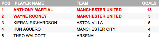 Manchester - Nach einem unfassbaren Fußballspiel bleibt Manchester United durch den 5:3-Erfolg im Topspiel des achten Spieltags weiterhin Tabellenführer der Premier League. Auf Seiten der Gäste konnten sich sowohl Anthony Martial als auch United-Kapitän Wayne Rooney doppelt in die Torschützenliste eintragen.