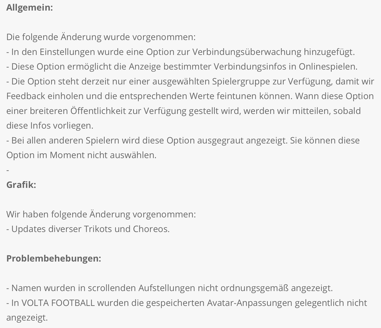 Vielleicht schaffen sie es dann auch ihre Aussage "wir haben auf die Community gehört" auch Taten folgen zu lassen. Warte ja immer noch darauf, dass die gelben Karten zum Saisonende gelöscht werden und ich nicht nach der ersten gelben Karte gesperrt werde. Die ganzen Updates der Faces bringen einem ja auch nichts, wenn EA zu unfähig ist, sie in einer laufenden Karriere einzupflegen. Gleiches gilt auch für Spieler wie Fati u.a. dieses Jahr.