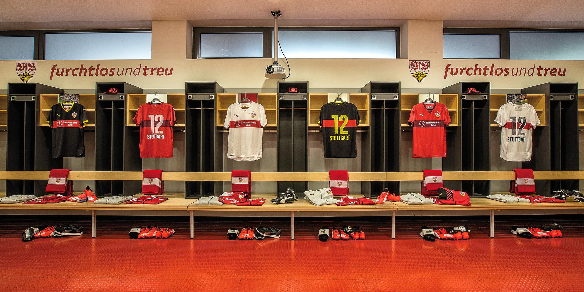 Rot: Sieht aus wie Leverkusen mit VfB Wappen... irgendwie passt es nicht so wirklich.