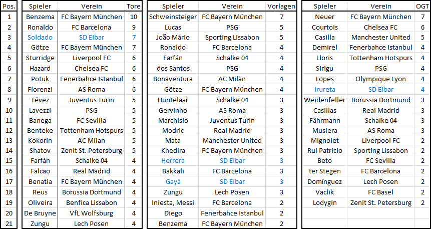 Für Juve hatte sich kaum etwas verändert, nach wie vor brauchte man 2 Tore, die würden nun halt nur noch zu einer Verlängerung reichen. Aber die Gäste bissen sich an der Verteidigung der Basken die Zähne aus, auch der später eingewechselte Morata konnte daran nichts ändern. In der Nachspielzeit fing man sich zusätzlich noch einen Konter, den Maxi Mendez, bedrängt von Chiellini zum 2:0 abschloss, die endgültige Entscheidung. Eibar steht im Viertelfinale, trifft dort aber auf Angstgegner Sevilla!