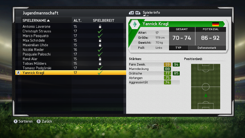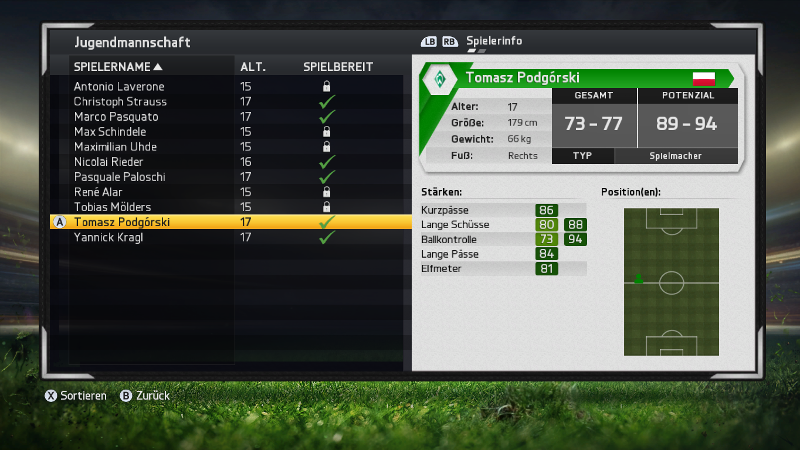 Ich hab das Alter der Jugenspieler auf 14-17 erweitert und die Arbeitsraten angepasst (mehr Mittlere und weniger Niedrige).