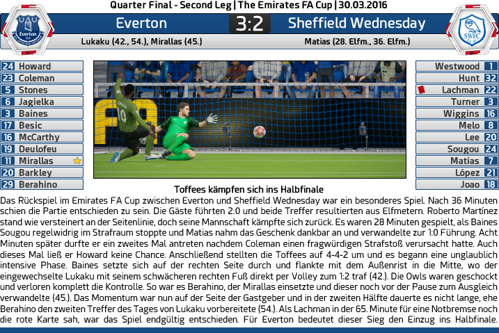 Ein Unentschieden in der Liga gegen Arsenal ist voll okay, wenn man sich die Tabelle anschaut. Arsenal steht dort ja sehr gut dar. Im Pokal musst Du wirklich alles abliefern, um Sheffield zu schlagen. Damit hast Du selbst bestimmt nicht gerechnet. Es sah kurzzeitig durch zwei Elfmeter sogar nach dem Desaster aus, aber die Reaktion deiner Mannschaft war sehr stark!