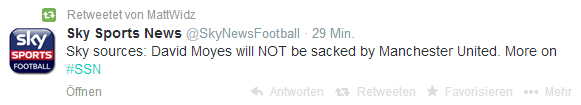 +++ BREAKING: Laut übereinstimmenden englischen Medienberichten feuert Manchester United den glücklosen David #Moyes +++http://bit.ly/1iCZAcI