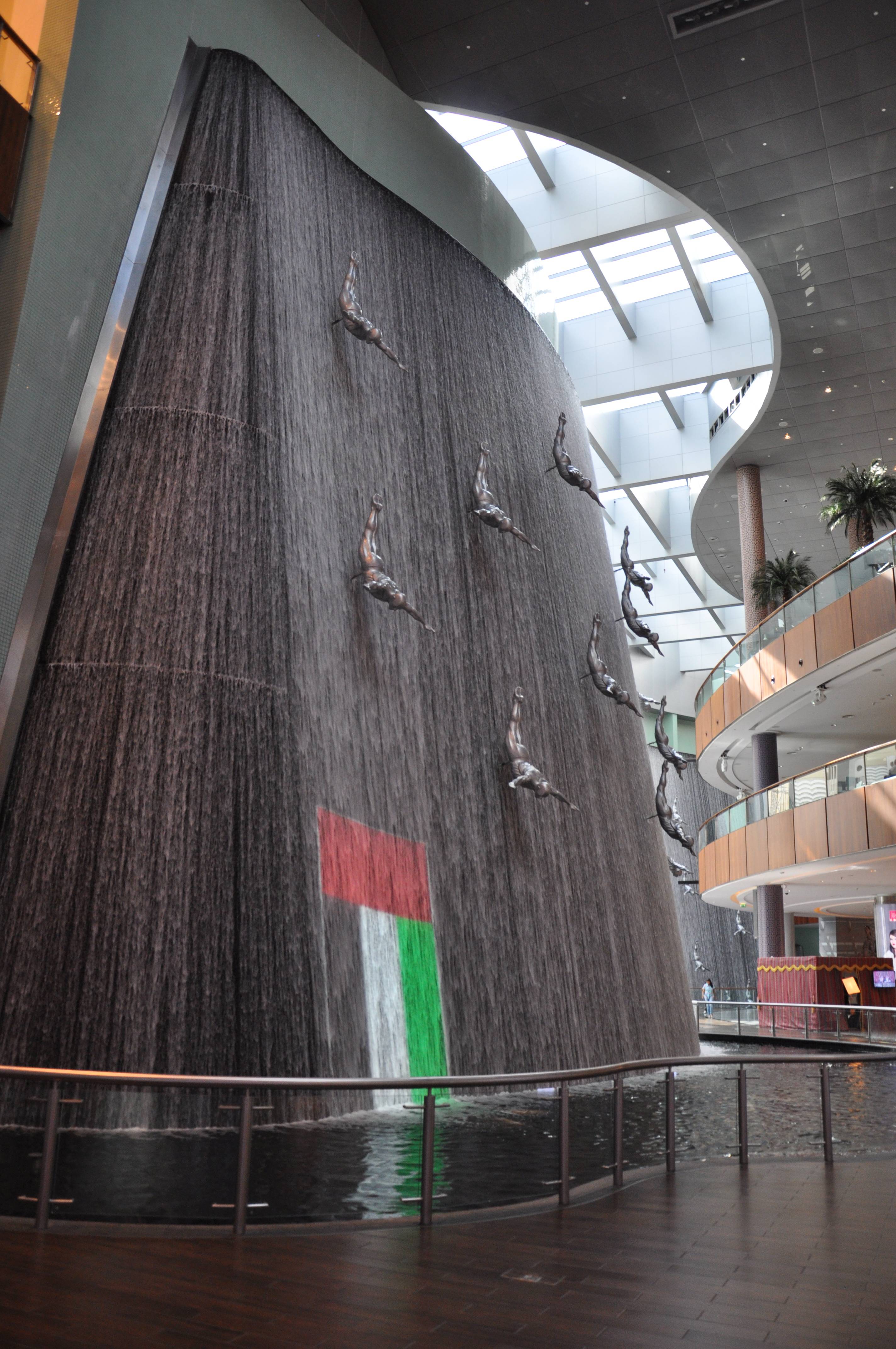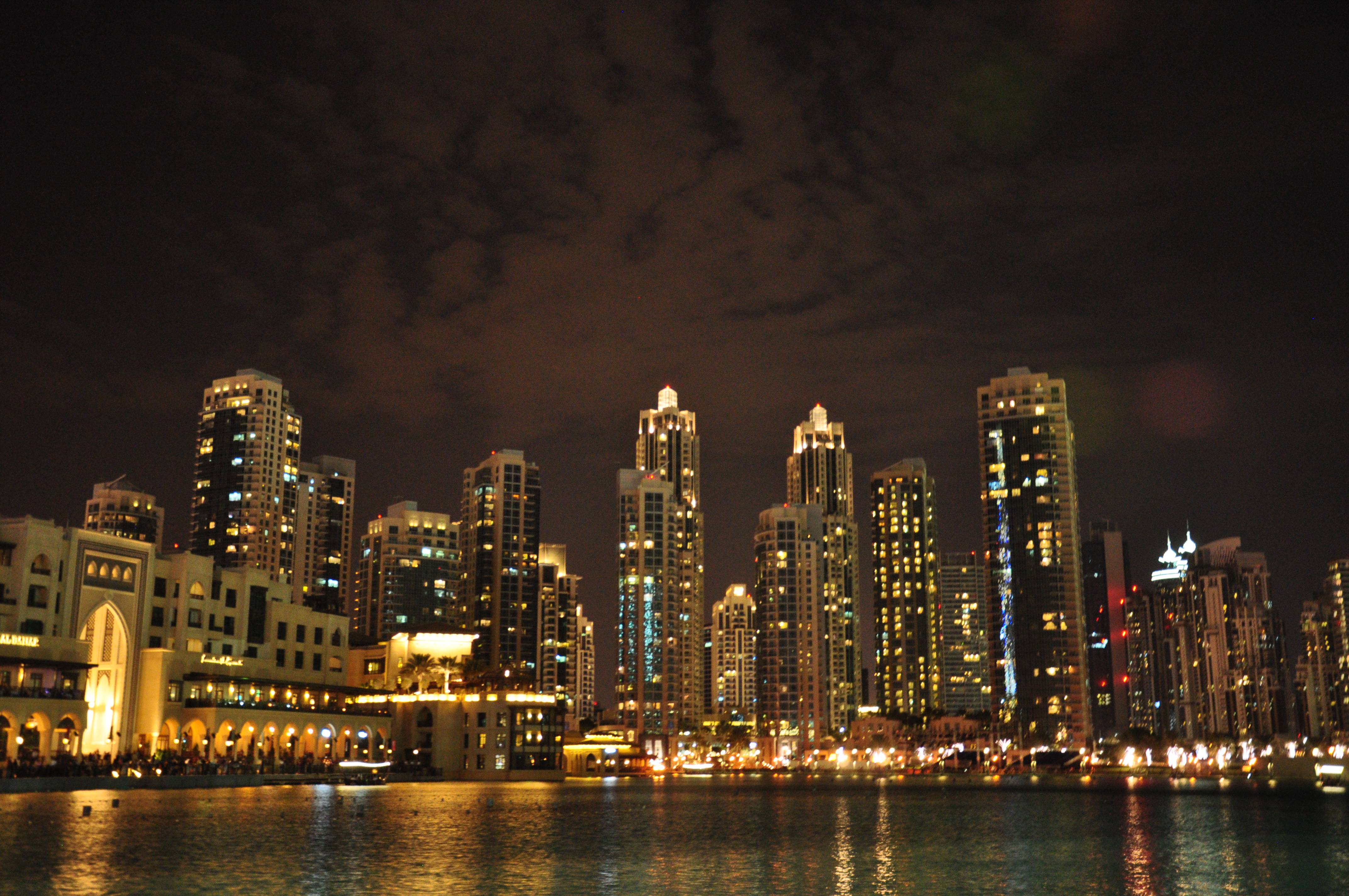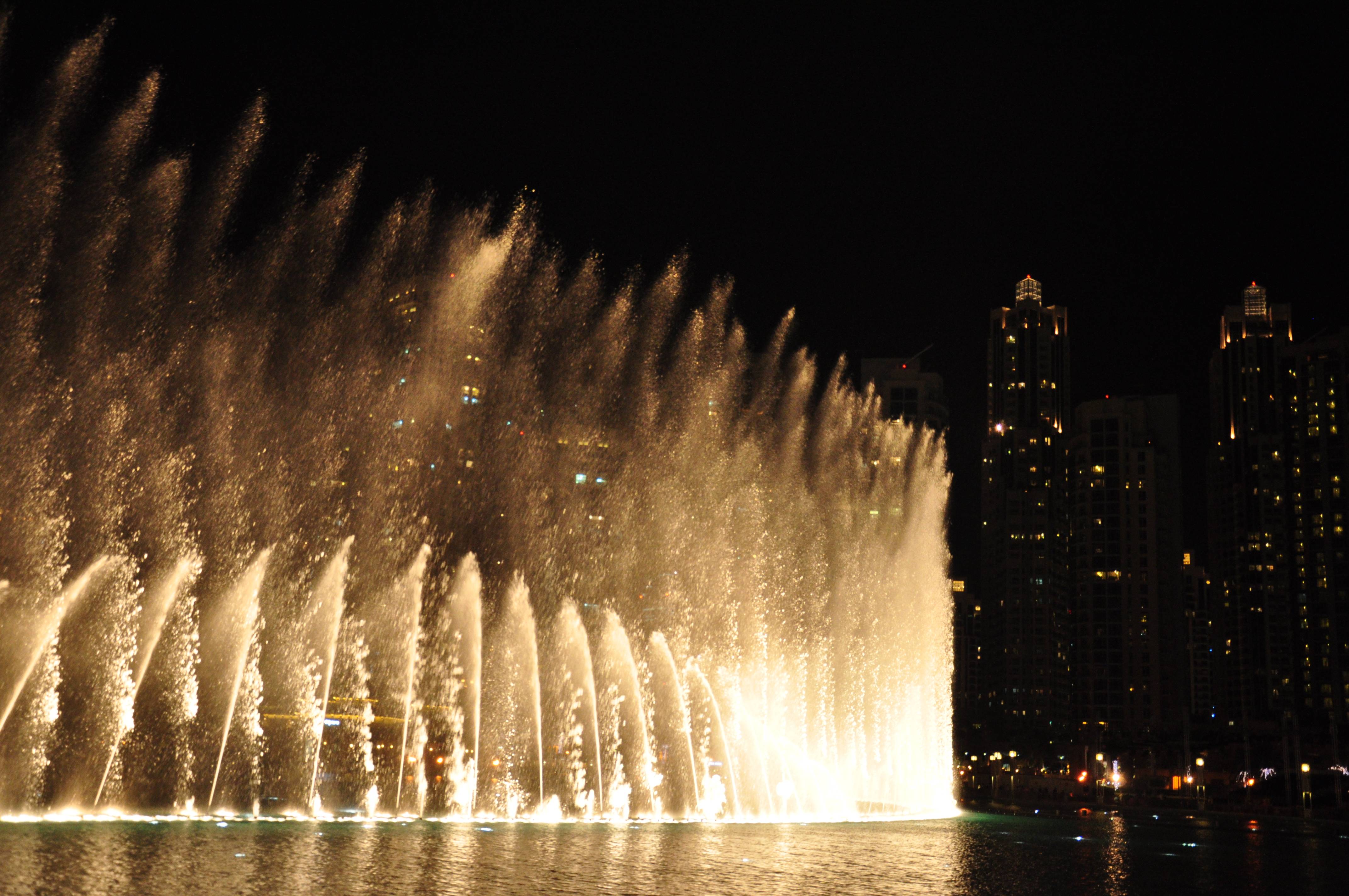 Nach einer Pizza, viele andere Geschäfte waren uns einfach zu teuer oder hatten draußen erst gar keine Karte, an der Dubai Mall (die größte Mall dort mit integriertem Aquarium in dem man auch mit einem Glasbodenboot fahren kann, einem Wasserfall, Sega Spielewelt, einer Eisbahn in olympischer Größe und vielem mehr) wurde es langsam dunkel und das nächste große Highlight wartete schon. Die Wasserspiele am Burj Khalifa! Einfach nur wunderschön und vielleicht das schönste was ich je gesehen habe. Die Stimmung, die Atmosphäre, die Musik, die Gebäude drumherum, das Flair, einfach nur ein Traum!!! Bilder können die Wasserspiele leider nicht so schön wiedergeben, wie es am Ende tatsächlich war.