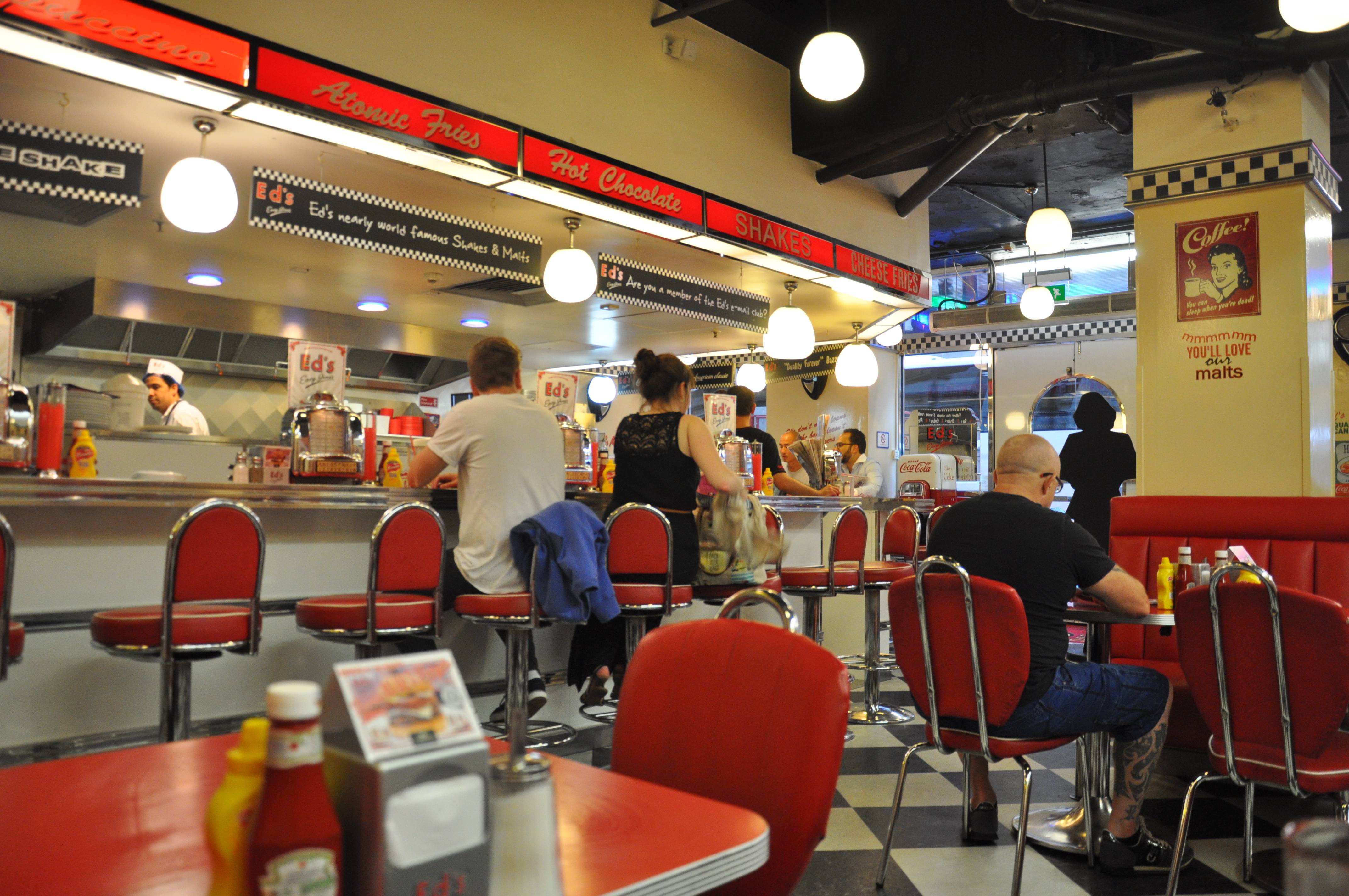 Eigentlich sollten noch 3 Stadien folgen aber irgendwie hatte ich genug. Da die U-Bahn Anbindung in die Stadt aber super ist, haben wir entschieden in die Stadt zu fahren und noch ein bisschen zu bummeln und eine gute Abendessen Location zu finden. Am Ende haben wir uns für Ed´s Diner entschieden, wo es Burger mit Pommes und Coleslaw gab sowie eine Refil Cola. Schlappe 35€ haben wir dort gezahlt, was uns und insbesondere unseren Füßen in dem Moment aber egal war. Alle Pubs und Restaurant die für uns in Frage kamen, lagen in dem Preissegmet. London ist einfach ein teures Pflaster.