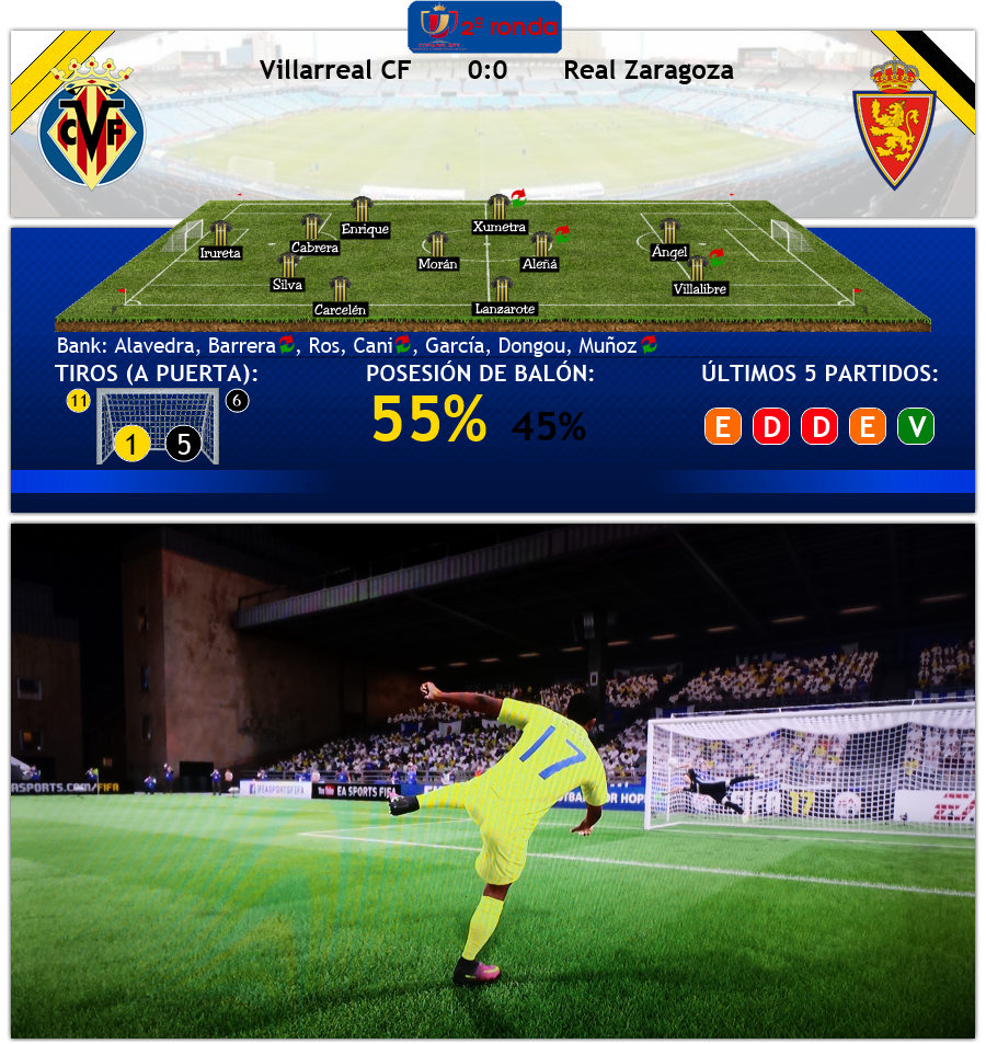 Ein erster wirklich schwieriger Prüfstein wartete auf Real Zaragoza in der zweiten Runde der Copa del Rey. Mit Villarreal CF bekam man einen EL-Starter zugelost, der für die wirkliche Form von Zaragoza ein Gradmesser sein sollte. Von Beginn an wird den Fans hier aber schnell klar, dass das für Villarreal keinesfalls ein Sieg im Vorbeigehen werden wird. Beide Mannschaften übersprangen die Anfangsphase und gingen gleich mit Abschlüssen zum Tagesgeschäft über, und nach 15 Minuten hatte Villarreal eine erste Chance, hier in Führung zu gehen, es gab Elfmeter, nachdem Silva Denis Cheryshev gelegt hatte, ob das wirklich innerhalb des Sechzehners war, darf bezweifelt werden, Bakambu trat an, aber Xabi Irureta erriet die Ecke und parierte den Strafstoß. Villarreal kurz geschockt und Zaragoza wollte die Gunst der Stunde nutzen, aber beim Schuss von Villalibre war Sergio Asenjo ebenfalls mit einer guten Parade zur Stelle.