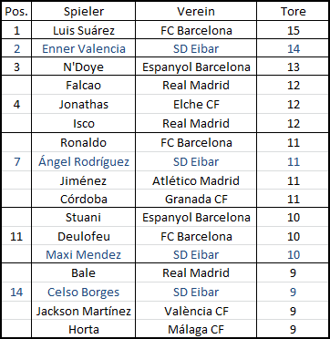Sehr schön, die Europa League ist dir sicher.:good: Wahnsinn da ballerst du Almeria und Malaga mal locker weg und anschließend gibt es im Bernabeu in einem nervenaufreibenden Spiel mit roter und gelb roter Karte einen genialen Sieg deiner Jungs. Grandios.:good::good: Enner Valencia in der Topscorerliste nur ein tor hinter Suarez von den Katalanen, richtig stark.:good: