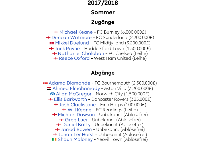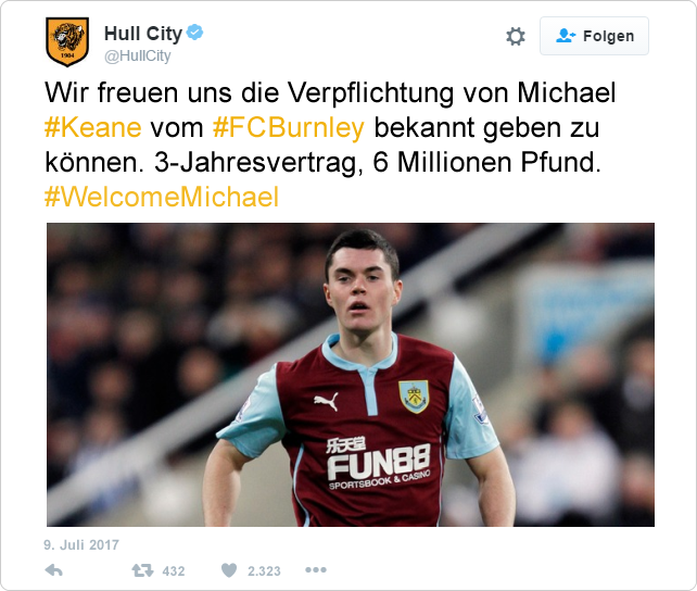Nachdem der Vertrag mit Michael Dawson nicht verlängert wurde, musste Hull in der Innenverteidigung nachlegen. Fündig wurde man hierbei beim Premier League Absteiger FC Burnley. Für 6 Millionen Pfund wurde Michael Keane von den Clarets losgeeist. Der 24-Jährige Engländer wird voraussichtlich in Konkurrenzkampf mit Harry Maguire treten, um den Platz neben Kapitän Curtis Davies.