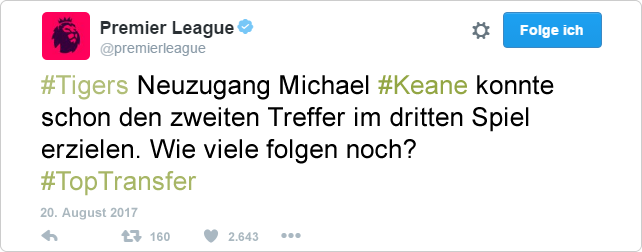 Interessante Transfers... allesamt, bis auf eventuell Keane aber Spieler mit keiner oder nur sehr wenig PL-Erfahrung. Watmore passt da meiner
