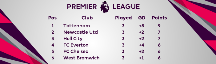 Tabellenausschnitt nach drei Spieltagen: