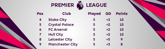 Tabellenausschnitt nach fünf Spieltagen: