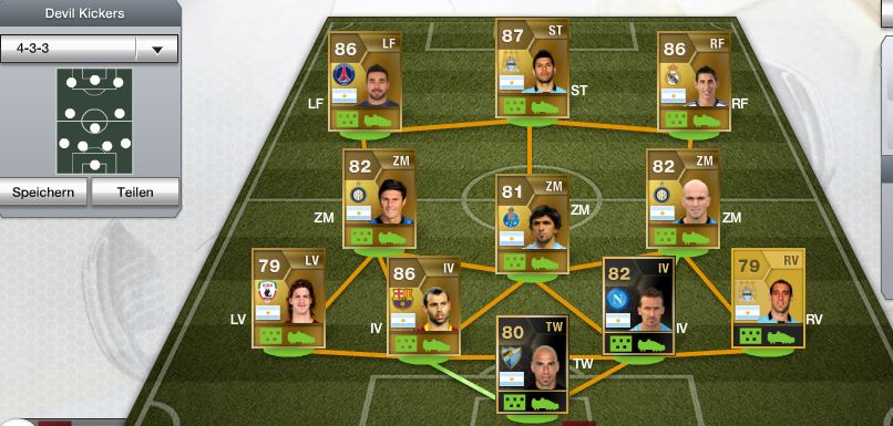 Spass macht ein argentinisches 433-Team. Habe Tevez als Ersatz und selbst der hat gut gescored (beim 6:7, dort war auch Bravo im LF).