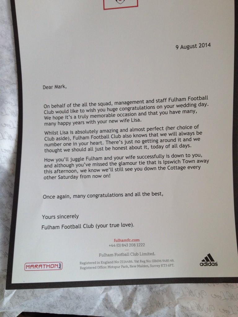 Glaube ich auch. Aber manche Dinge (wie zB. das seine Frau einen anderen Verein mag ... sie ist Fan von QPR) können ja nicht einfach nur generisch sein. Denke da hat sich schon jemand ein paar Minuten mehr Zeit genommen als einfach nur einen Vordruck auszudrucken.