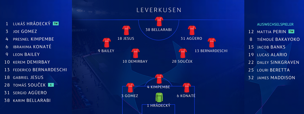 Erzwungenermassen den ersten Wechsel von Bayer Leverkusen.