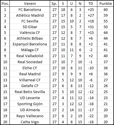 In der Liga lief alles normal bis auf die unglückliche Niederlage gegen Bilbao und das Remis trotz zwischenzeitlicher Führung gegen Malaga.:yes:
