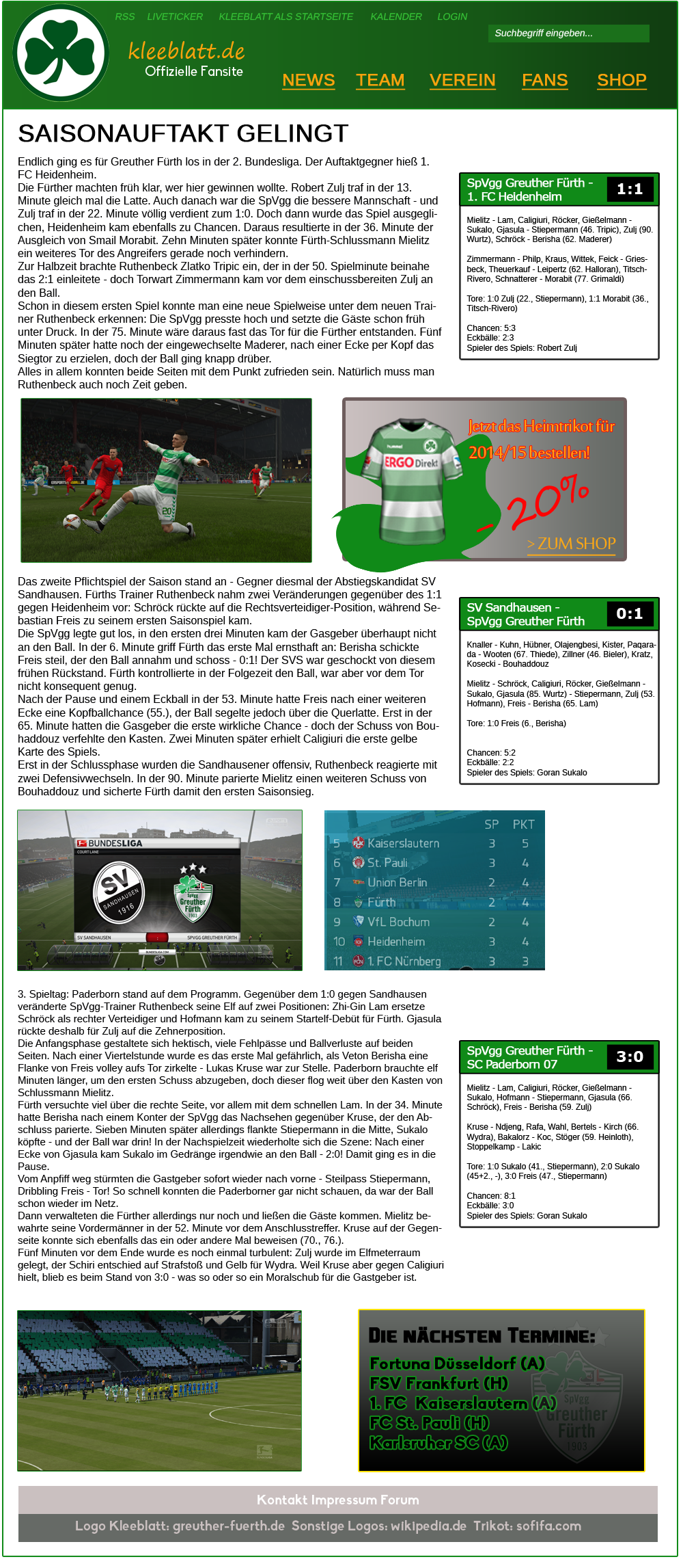 Layout gefällt mir richtig gut bei den Spielen, ist generell sehr übersichtlich gehalten, aber warum steht dort, dass man das Trikot der Saison 14/15 bestellen kann? Da sind die Kleeblätter aber nicht ganz aktuell im Fanshop unterwegs :sarcastic: