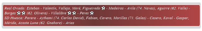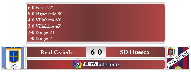 Alles wieder im Lot bei Oviedo? Das Ausscheiden in der Copa gegen Eibar schien zumindest keinen bleibenden Schaden hinterlassen zu haben, denn gegen Huesca präsentierte man sich mit der Einsergarnitur wieder in Spiellaune, ließ dem Schlusslicht dabei auch keine Chance. Celso Borges mit einem Doppelpack und Asier Villalibre quasi mit dem Pausenpfiff sorgten schon früh für klare Verhältnisse, auch nach der Pause ging das Spiel auf ein Tor weiter, Huesca kam lediglich einmal durch Mérida gefährlich zum Abschluss, aber der Ball ging knapp drüber. Mit dem zweiten Tor von Villalibre in der 80. Minute war dann auch hier alles klar, letztendlich sorgten Figueiredo mit einem schönen Schuss, der via Innenstange reinging und Fábio Peres, der erleichtert über seinen Treffer alle Emotionen rausließ, für einen 6:0 Kantersieg, Huesca muss nach dem Debakel schnell schauen, dass sie da raus kommen, um nicht den Anschluss zu verlieren. |