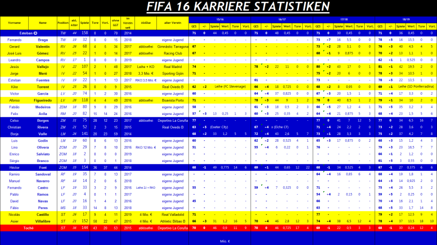 Danke dir. Ja, in der Copa gegen Eibar verkackt und in der Liga die einzige Niederlage gegen Mirandés, darum unterschätze nie deine Ex-Clubs. :) Ja, über den Sommer wird sich vielleicht noch ein wenig was tun, ein IV wird noch gesucht, da Torrent zu schwach ist, sonst bin ich eigentlich recht zufrieden.