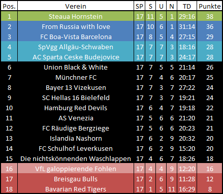 Super. Einen Sieg gegen einen Tabellennachbarn und einen Punkt gegen den Spitzenreiter. Ab jetzt geht es aufwärts. Abteilung attacke xD... Hoffe ich zumindest. Möchte eigentlich schon noch unter die Top 6. Gut ist das es sehr eng ist, schlecht ist das es sehr eng ist! :rofl: