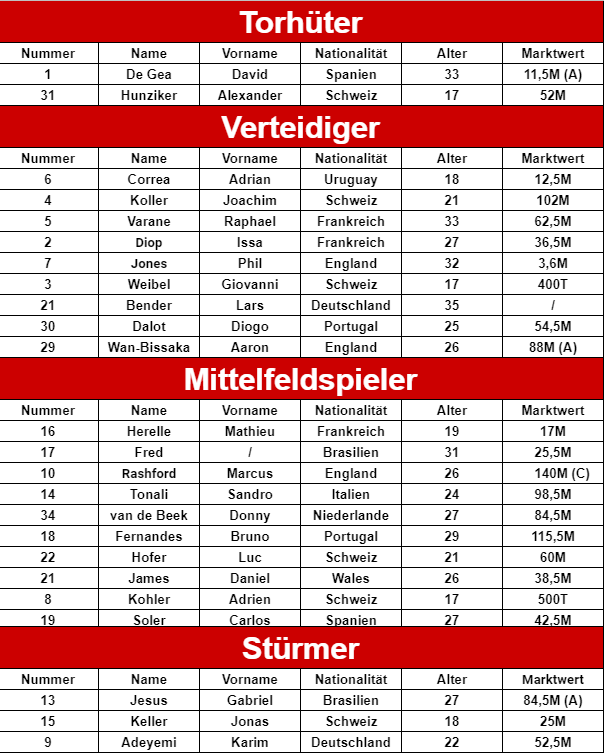 David De Gea: 4/1/2/6,5 (Verletzt)