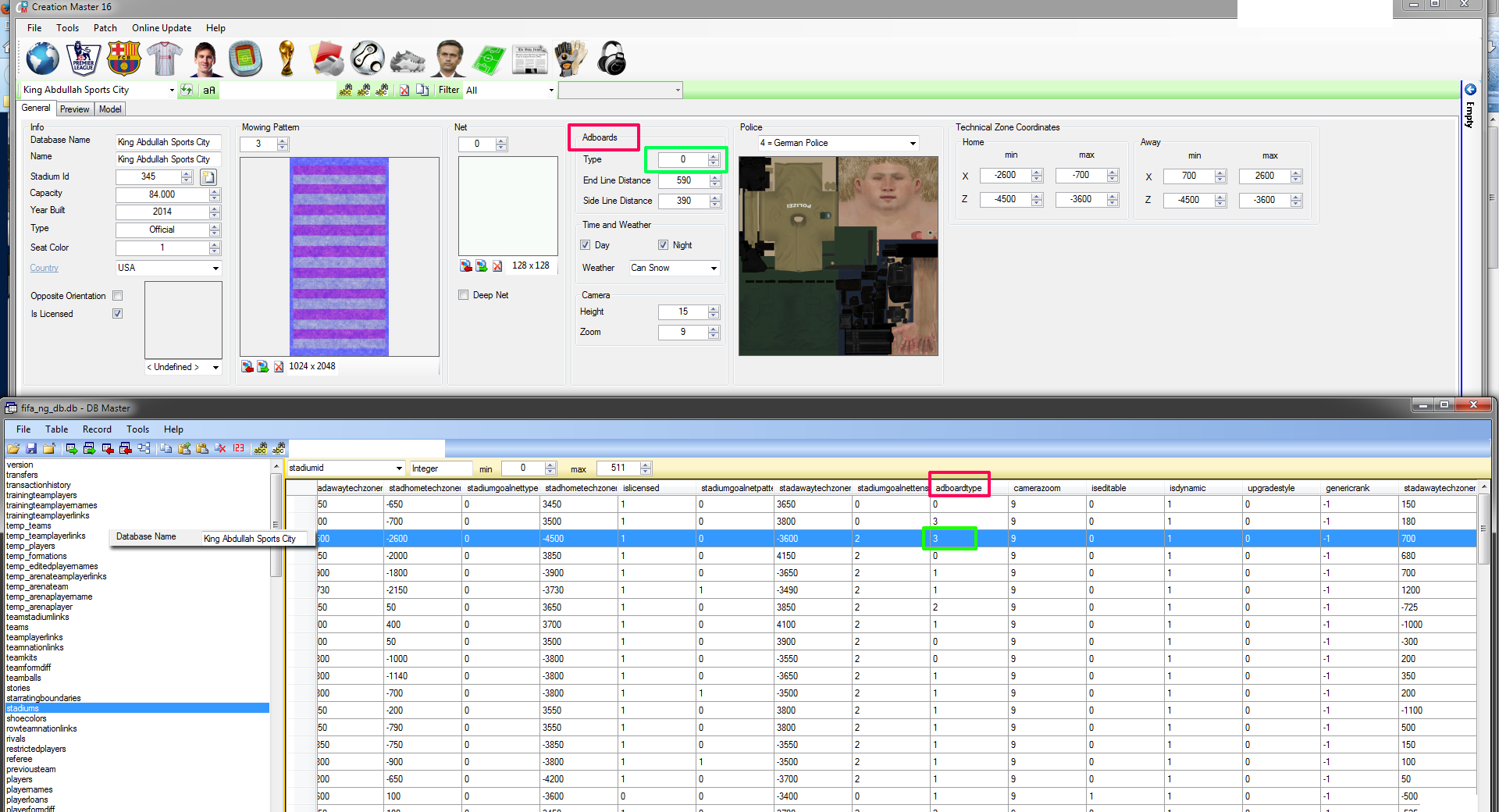 Kann mir jemand sagen, warum bei gleicher (da gleichzeitig geöffnet) Datenbank im CM16 bei der adboardtype eine 0 steht, und im DB Master eine 3 beim ein und demselben Stadion?