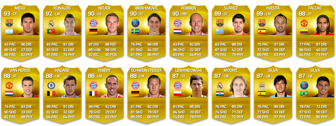 Also van Persie ist definitiv zu hoch, genau wie iniesta. Van Persie hätte so wie falcao oder rooney sein können, also 86. Iniestas Zeit ist iwie vorbei. War mal echt Weltklasse, aber jetzt wo tiki taka nicht mehr läuft läuft's auch bei ihm nicht.