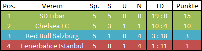 Nach dem Sieg gegen Chelsea könnte man sich heute mit einem Sieg gegen Fenerbahce bereits frühzeitig für die KO-Phase qualifizieren, auch Chelsea könnte mit einem Sieg gegen Red Bull bereits alles klarmachen. Doch die bisher so geprügelte türkische Abwehr stand heute ausnahmsweise gut, ließ wenig zu, offensiv ging wieder erschreckend wenig, ein einziger Schuss von Ünal verfehlte das Tor knapp, Irureta wäre aber zur Stelle gewesen. In der CL will es dann aber Soldado wohl in seiner letzten Saison nochmals wissen, ein Schuss in der 33. Minute kracht an den Pfosten, 5 Minuten später startete Villa eine Sekunde zu früh und stand im Abseits.