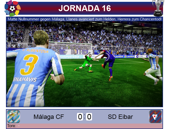 Kaum etwas gelang im Spiel gegen Málaga CF. Zu schwer wiegten die offensiven Ausfälle von Vargas, Villa und Gayà, der mit einer Zerrung für diese Partie passen musste. Soldado und Herrera bildeten das offensive Duo, auf den Seiten setzte Garitano auf den jungen Mosquero und Jesé. Aber einer versaute Eibar den Abend, Llanes im Tor des FC Málaga. Der Eigenbauspieler hielt die besten Möglichkeiten der Basken, dazu kam, dass Herrera aus den besten Chancen kein Kapital schlagen konnte, sogar in einem 1-gegen-1 scheiterte der Stürmer. Nicht nur deshalb wurden nach dem 0:0 die Stimmen lauter, dass die Zeit für Herrera in Eibar wohl im Sommer vorbei sein könnte, weil es ohne Soldado wohl noch düsterer aussehen würde. Doch Garitano stellte sich schützend vor seinen Stürmer: "Wir dürfen nicht vergessen, was Cristian alles schon geleistet hat für uns, die aktuelle Situation ist nicht ideal, aber man kann es ihm nicht verübeln, wenn ein junger Spieler einfach so daherkommt und alles kurz und klein schießt. Das verunsichert auch einen Stammspieler wie Herrera. Wir werden im Sommer einen großen Bruch haben, aber Herrera ist sicherlich kein Spieler, den ich einfach so aussortiere, wenn es mal nicht läuft!"